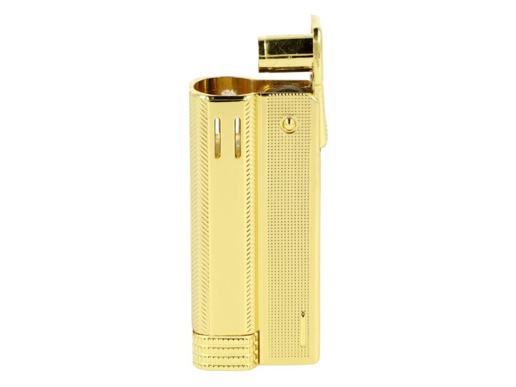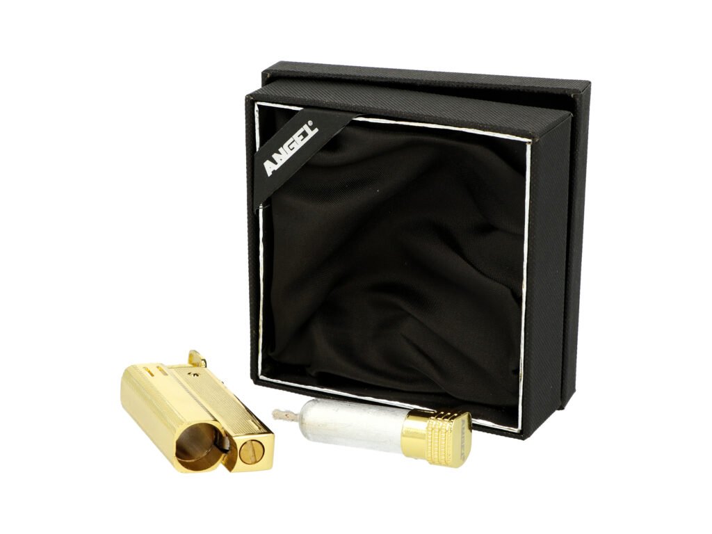 Stylový benzínový zapalovač Angel Austria Gold. Kovový kamínkový zapalovač rakušák v zlatém lesklém provedení a texturovaným povrchem. Stisknutím a odklopením horního krytu zapalovače škrtneme kamínkem a plamen se zapálí. Ve spodní části zapalovače najdeme vysunovací zásobník s vatou pro absorbování benzínu. Benzínový retro zapalovač je dodávaný nenaplněný v dárkové krabičce.