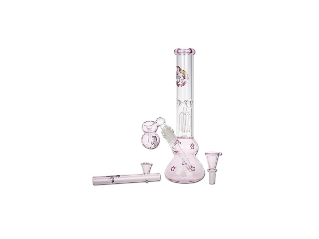 A je to ještě lepší: protože se jedná o sadu „Bitch Bong“, existuje více skvělých vychytávek v odpovídajícím vzhledu růžového jednorožce. Pro bezpečné a dobře vypadající uložení 'Bitch Bong' je k dispozici tlačná mísa s předchladičem a lapačem popela, parní válec a dekorativní a stabilní kufr. Všechny dámy a dívky po celém světě si toto bong zamilují!