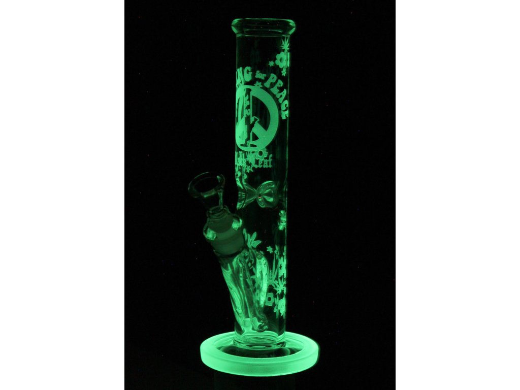 Bong skleněný - Black Leaf - Smoking for Peace, glow motiv