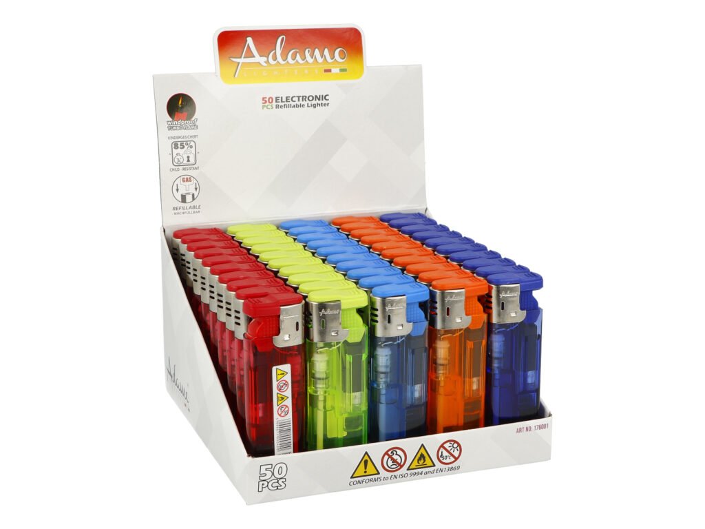 BOX 50 ks - Zapalovač - Adamo Piezo - Turbo Colored