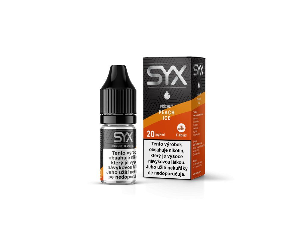 E-liquidy SYX NS - Peach Ice. Užijte si sladkou a šťavnatou chuť zralé a chladivé broskve. Každý potah vám přinese vlnu osvěžujícího ledu, který zdůrazňuje přirozenou sladkost broskví a zanechává vás chladnými a spokojenými.