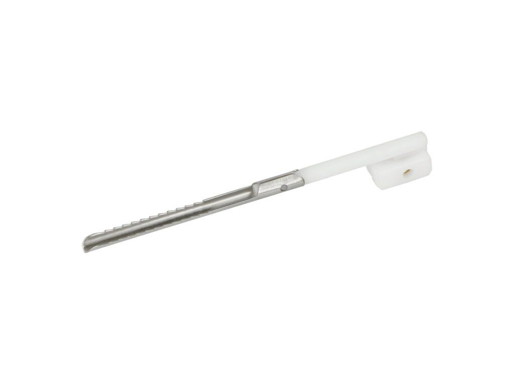Náhradní hrot pro plničku cigaretových dutinek OCB Mikromatic Duo. Tento hrot je ovládán pákovým mechanismem a slouží k plnění dutinky tabákem.