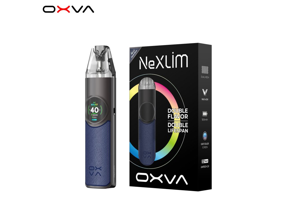 OXVA NeXLIM posouvá hranice otevřených POD systémů. Kombinuje elegantní kovové tělo, moderní technologie a výkon, který si přizpůsobí každý vaper podle svého. S kapacitou baterie 1500 mAh, výkonem až 40 W a intuitivním displejem je NeXLIM ideální volbou pro ty, kdo hledají spolehlivé zařízení pro celodenní vapování.