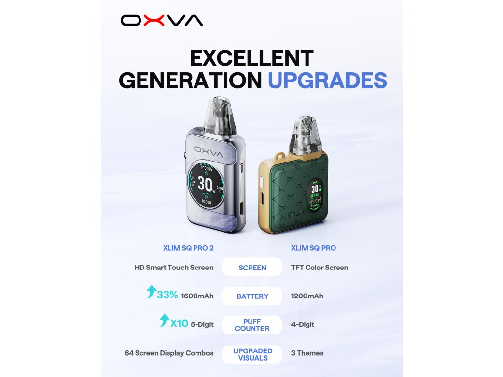 OXVA Xlim SQ PRO 2 posouvá pod systémy na novou úroveň. Díky 1,09″ HD dotykovému displeji a intuitivnímu ovládání nabízí výjimečný komfort při každodenním používání. V menu zařízení najdeš kromě výkonu i svítilnu, kalendář, stopky, animace, záznamy o potazích a navíc plně lokalizované české rozhraní.