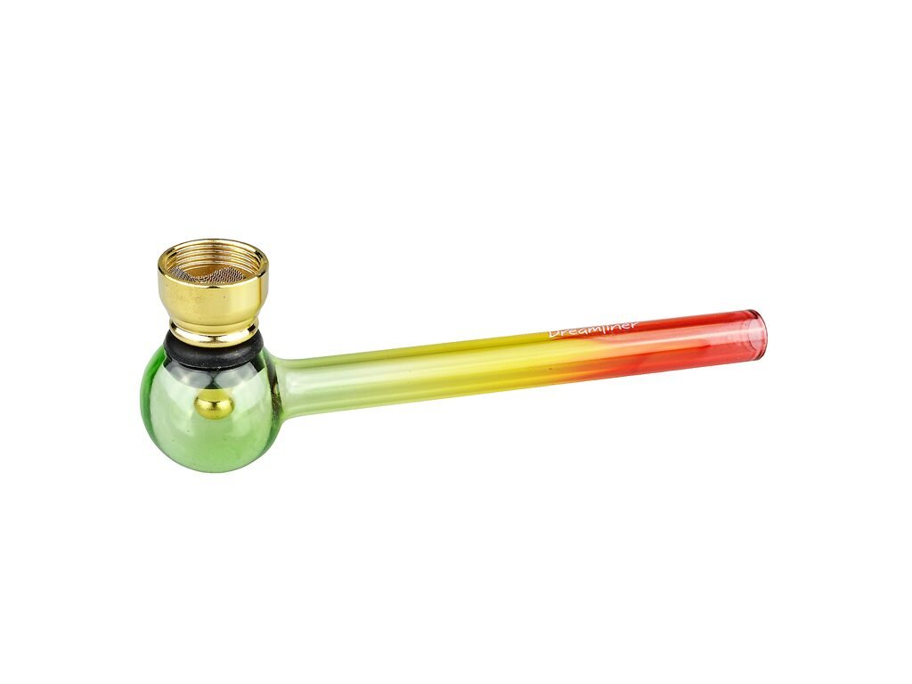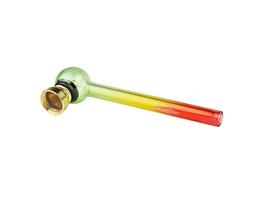 Skleněná šlukovka Dreamliner Rasta. Rovná šlukovka je vyrobená z kvalitního skla a je tónována do barevného Rasta provedení. Kovový kotlík se sítkem je ve zlatém provedení. Pro snadné čištení šlukovky lze kotlík vyjmout. Díky svojí malé hmotnosti a zpracování lehce padne do ruky.