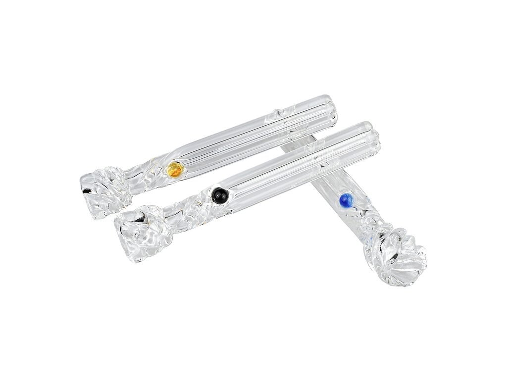 Skleněná šlukovka s větším kotlíkem. Rovná čirá skleněnka je zdobená barevným kamínkem. Šlukovka je vyráběna ručně v ČR. Cena je uvedena za prodejní balení - 1 ks.