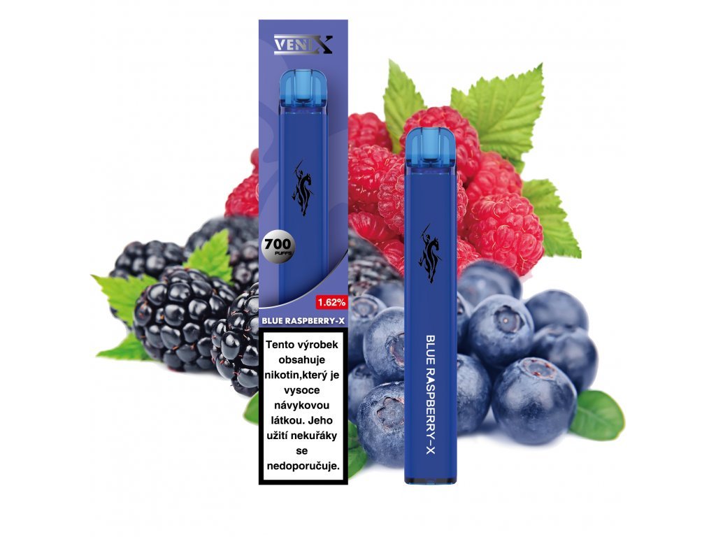 Jednorázová elektronická cigareta VeniX s příchutí malin, borůvek a ostružin - Blue RASPBERRY-X. Až 700 potahů a příjemnou chutí. Užijte si perfektní vaping s naši elektronickou cigaretou VeniX.
