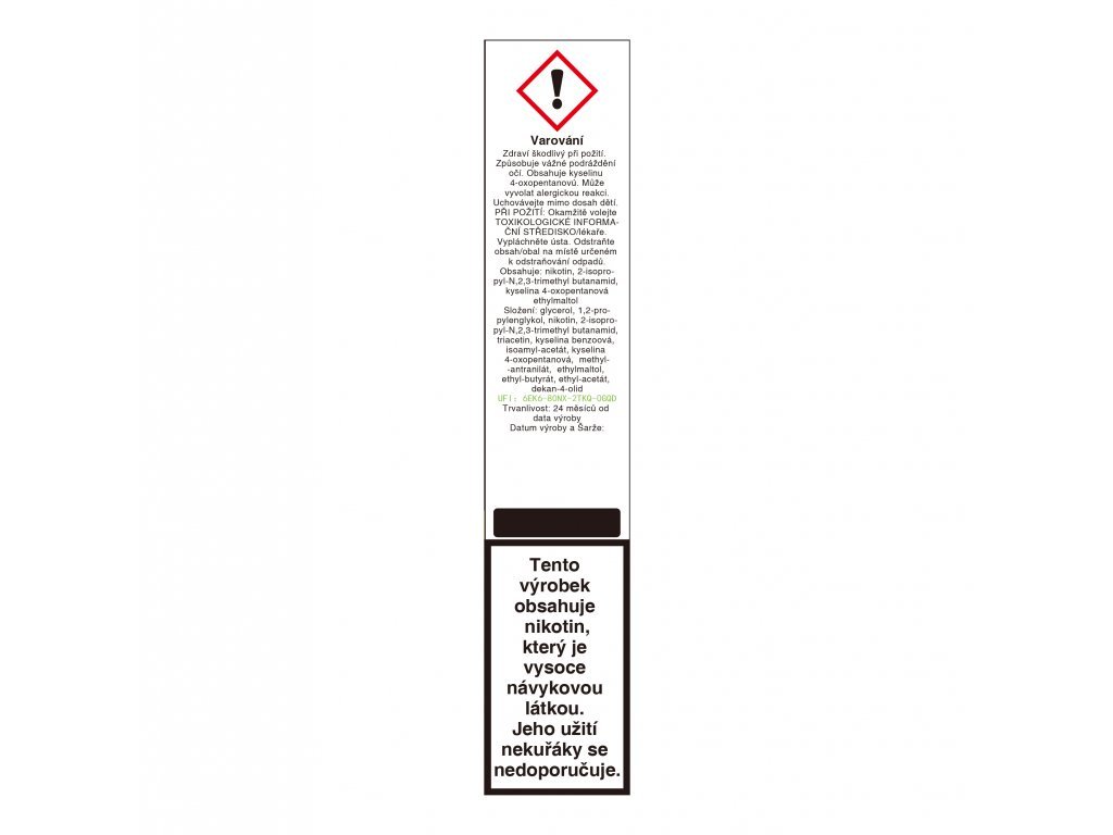 Pouze pro osoby starší 18 let. Tento výrobek obsahuje nikotiny, který je vysoce návykovou látkou. Jeho užití se nekuřáky nedoporučuje.